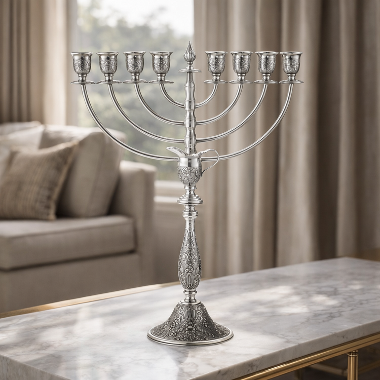A curated selection of 925 sterling silver Judaica, designed to accompany the groom through Shabbat, holidays, and the life ahead.