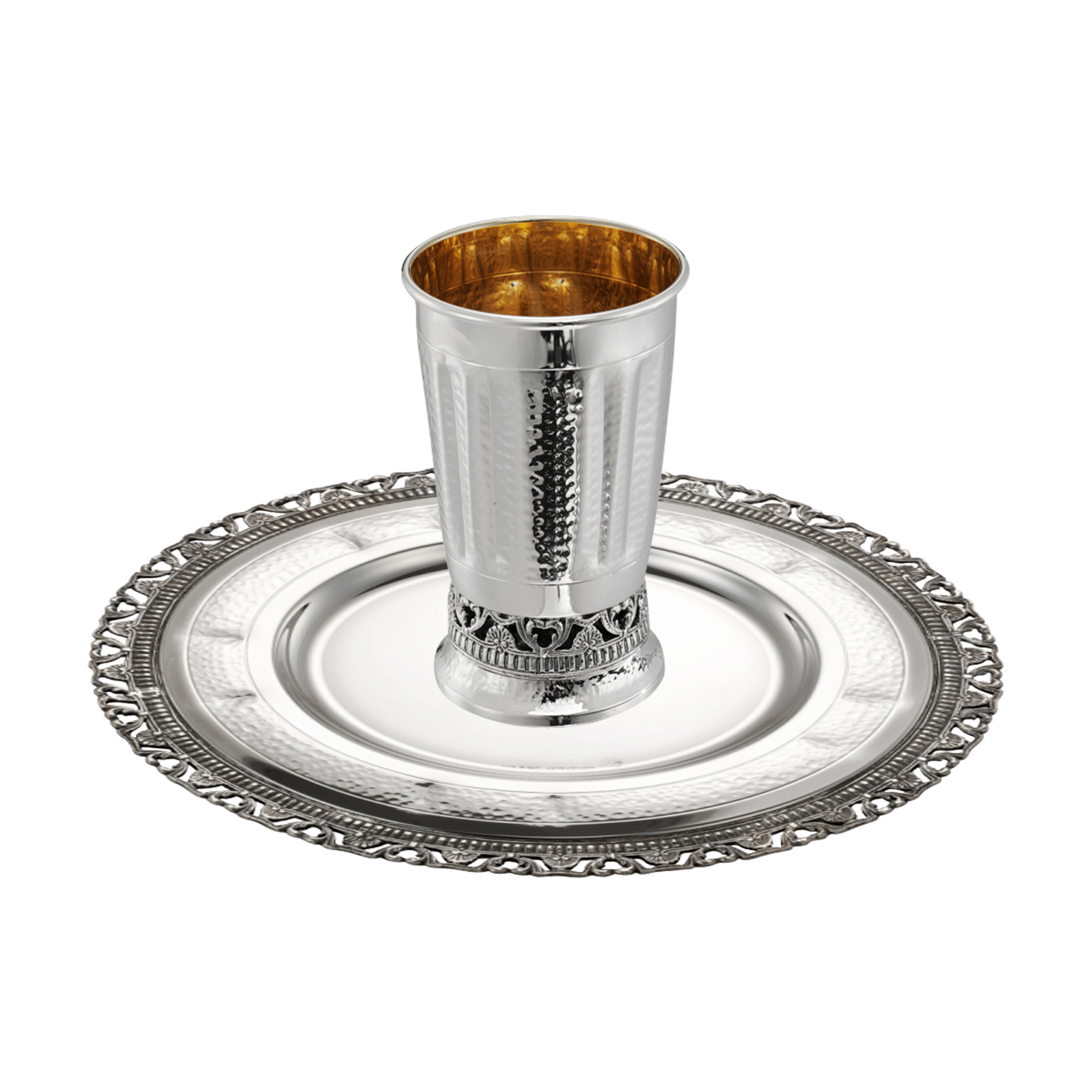 Sterling Silver Hammered & Cast Kiddush Cup